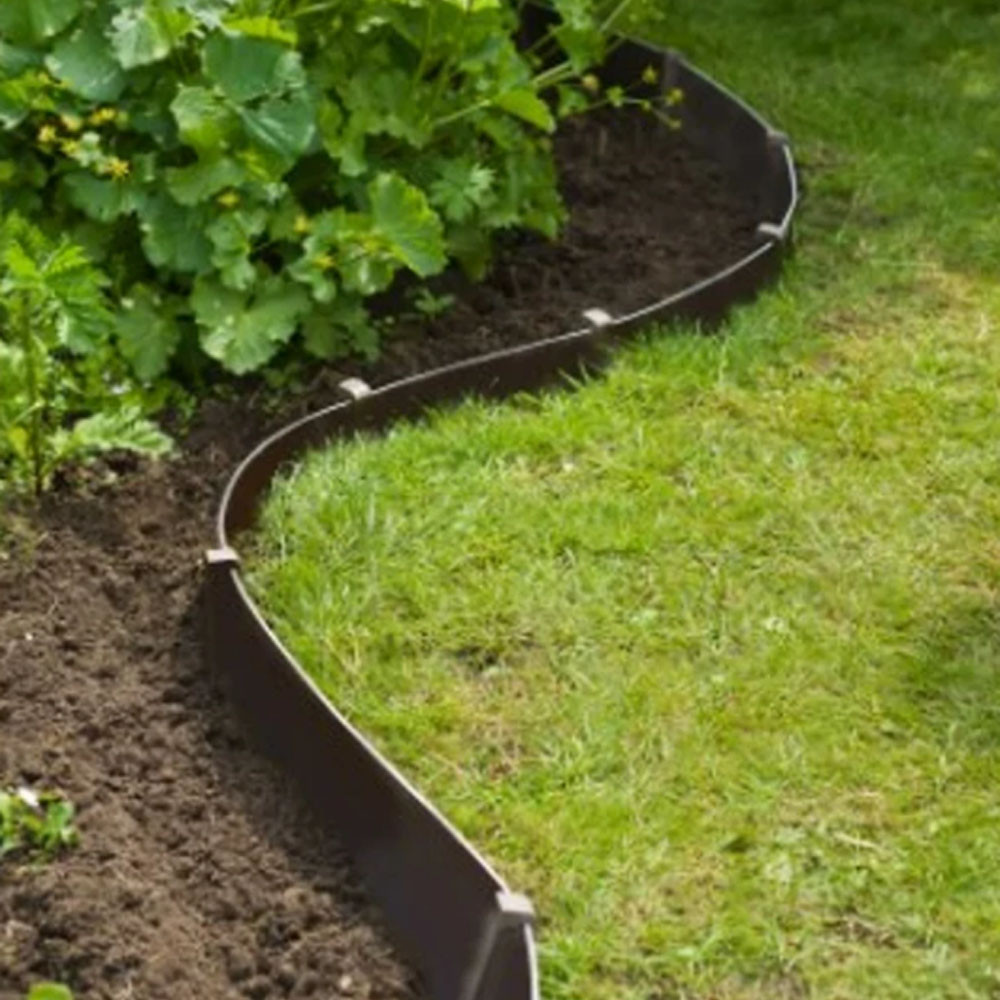 Az újrahasznosított polietilén ágyásszegély 7,5 cm x 10 m tartós és rugalmas megoldás kertek rendezett kialakításához. Alkalmas virágágyások, gyepfelületek és kerti utak elhatárolására. Könnyen formázható, így íves és egyenes vonalak mentén is használható. Időjárásálló kialakítása hosszú távú kültéri használatot biztosít.