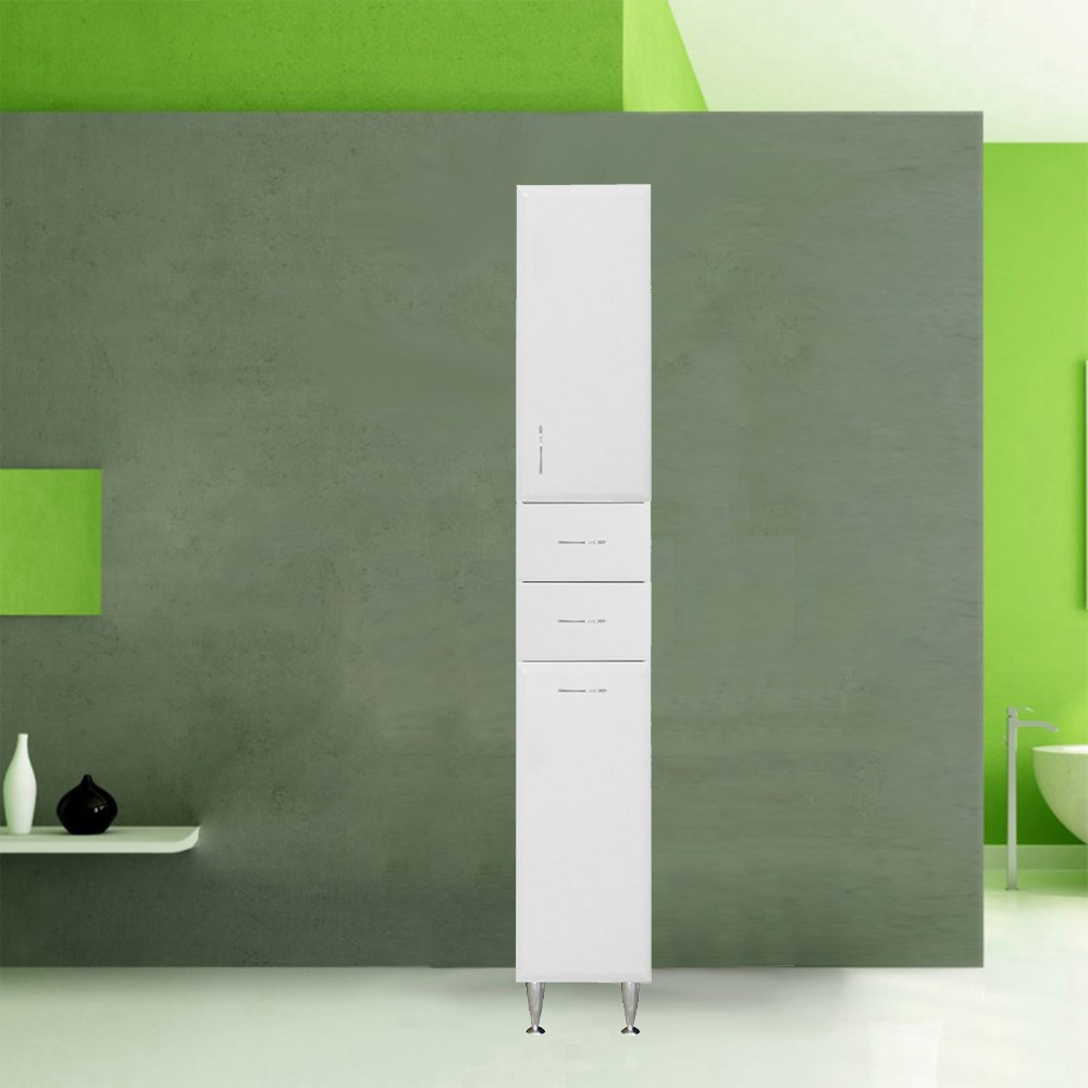 Bianca Plus 30 magas szekrény 1 ajtóval, 2 fiókkal, szennyestartóval, magasfényű fehér színben, jobbos