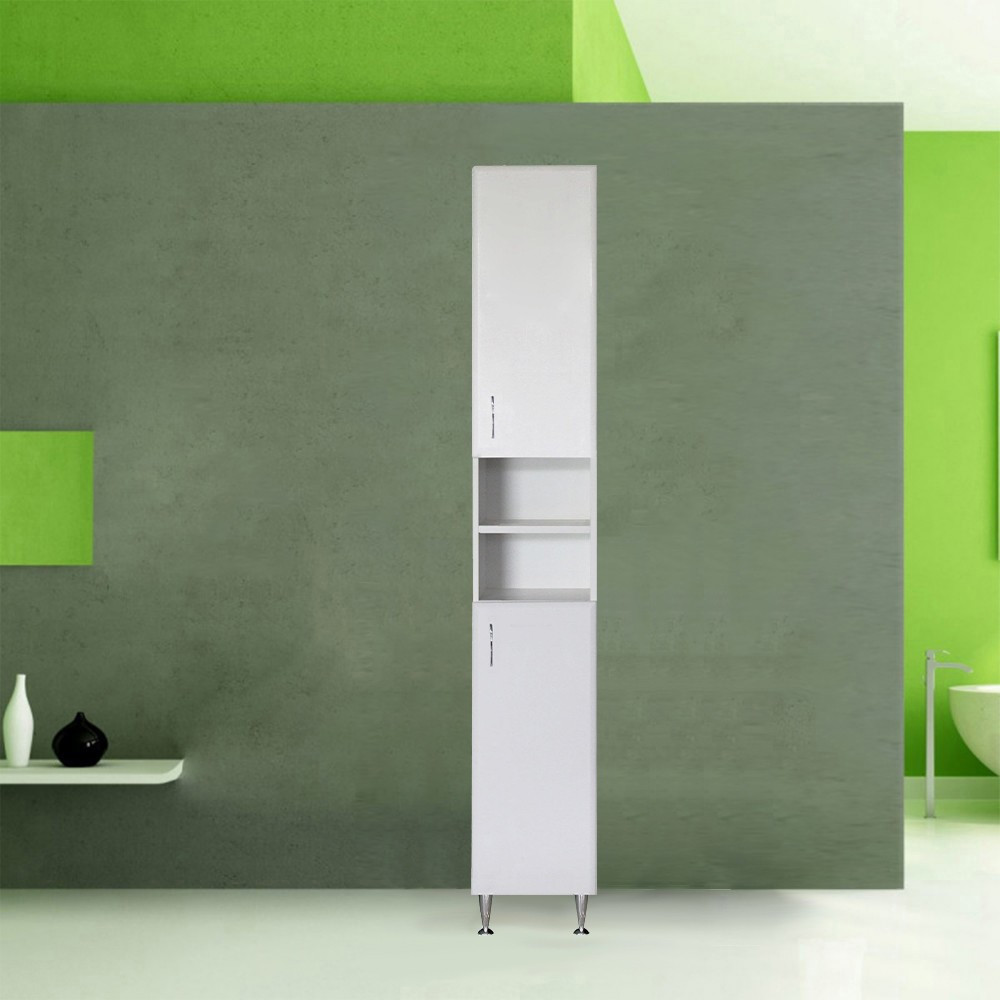 Bianca Plus 30 magas szekrény 2 ajtóval, nyitott, magasfényű fehér színben, univerzális