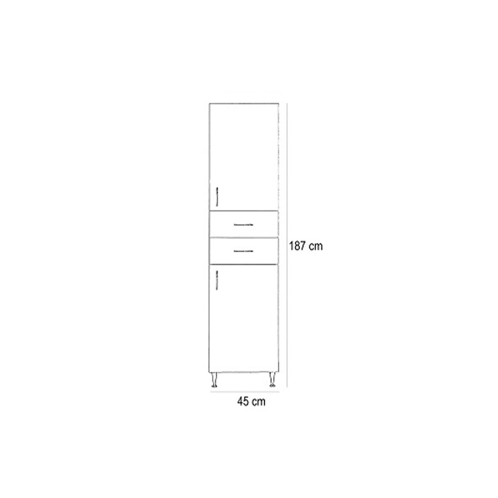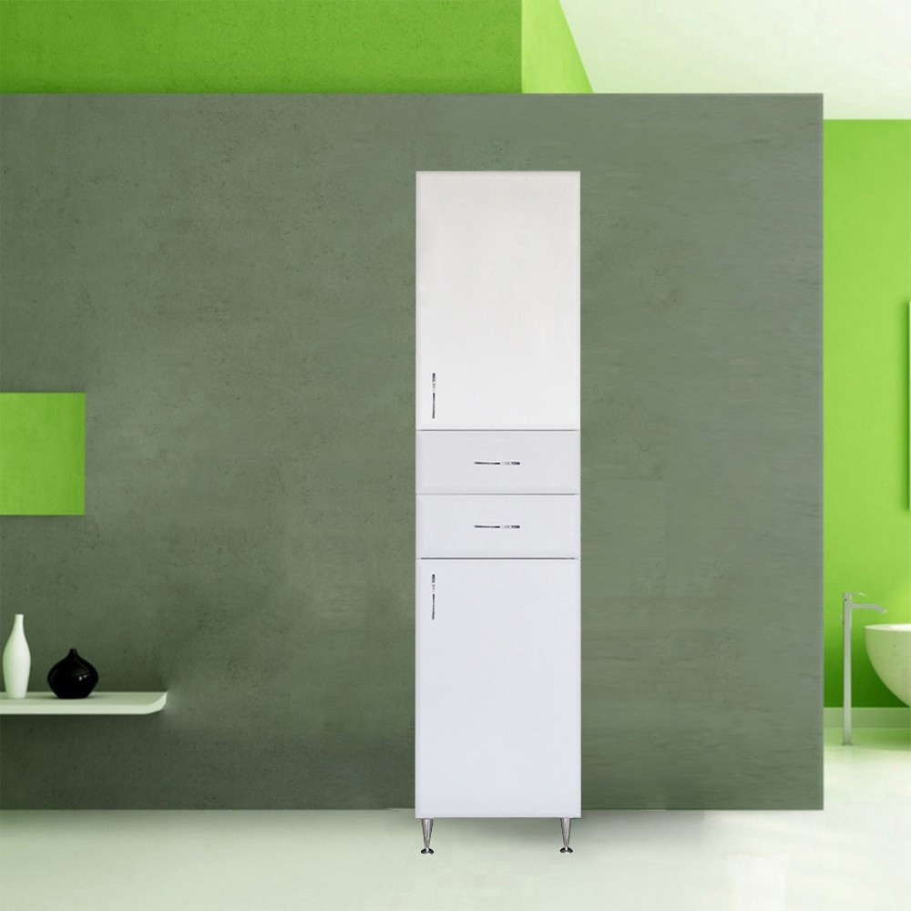 Bianca Plus 45 magas szekrény 2 ajtóval, 2 fiókkal, magasfényű fehér színben, jobbos