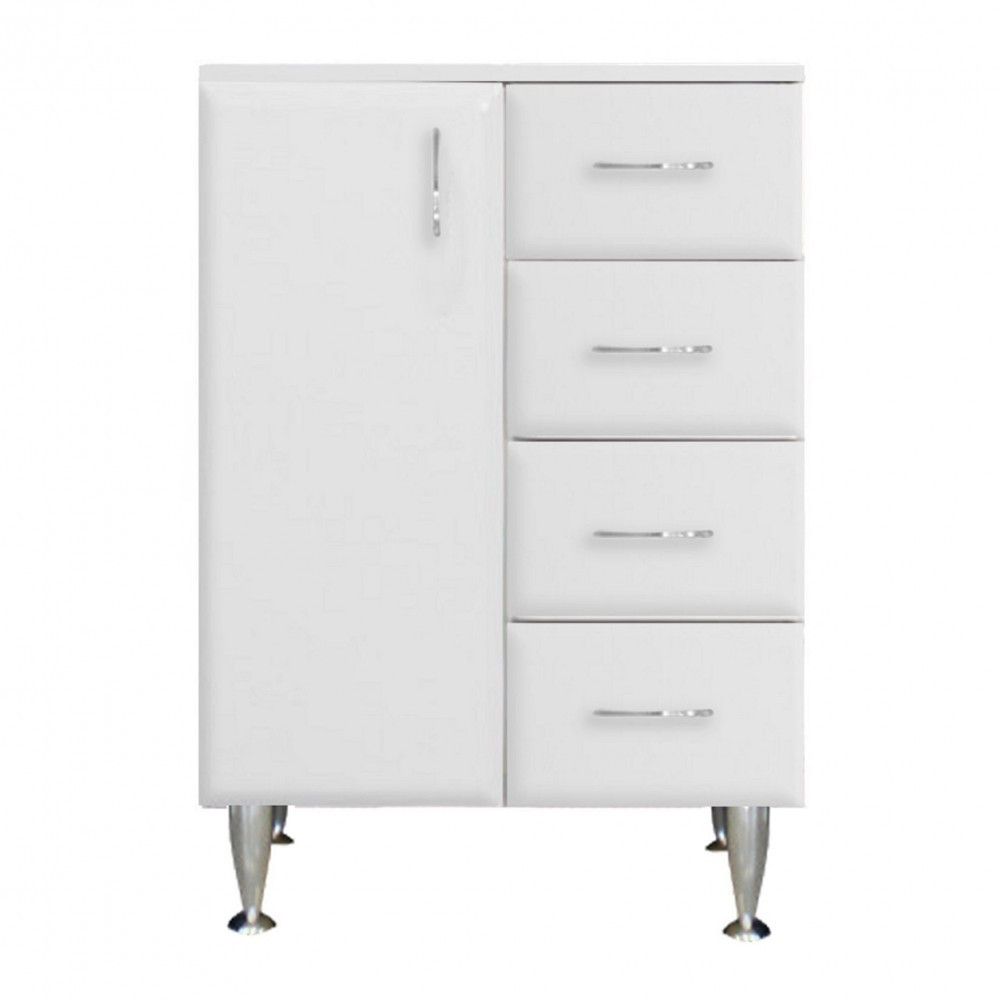 Bianca Plus 60 alacsony szekrény 1 ajtóval, 4 fiókkal,magasfényű fehér színben, balos