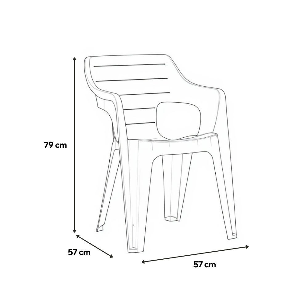 A Bilbao műanyag kartámaszos kerti szék modern megjelenésével és letisztult formavilágával jól illeszkedik a kert, terasz vagy erkély bútorai közé. A stílusos kialakítás beltéri használatra is alkalmassá teszi, például étkezőkben vagy közösségi terekben.