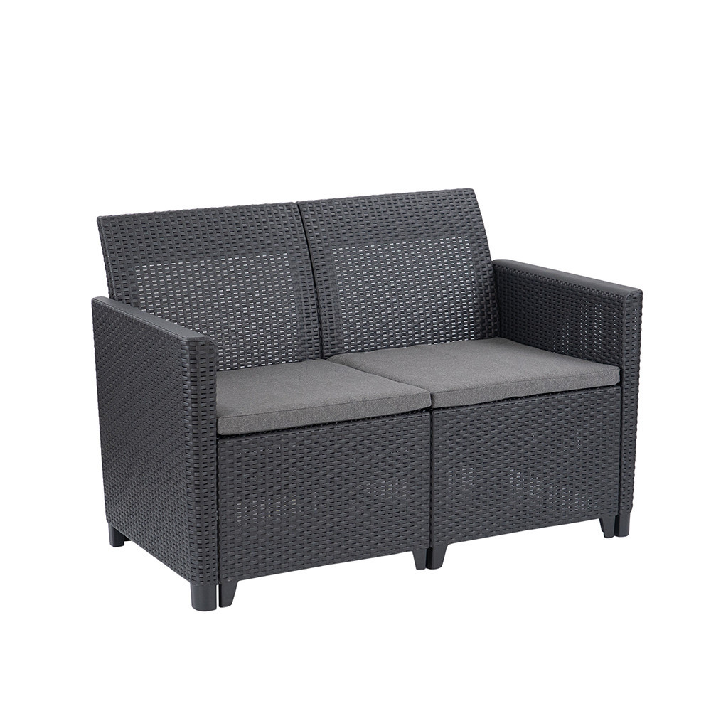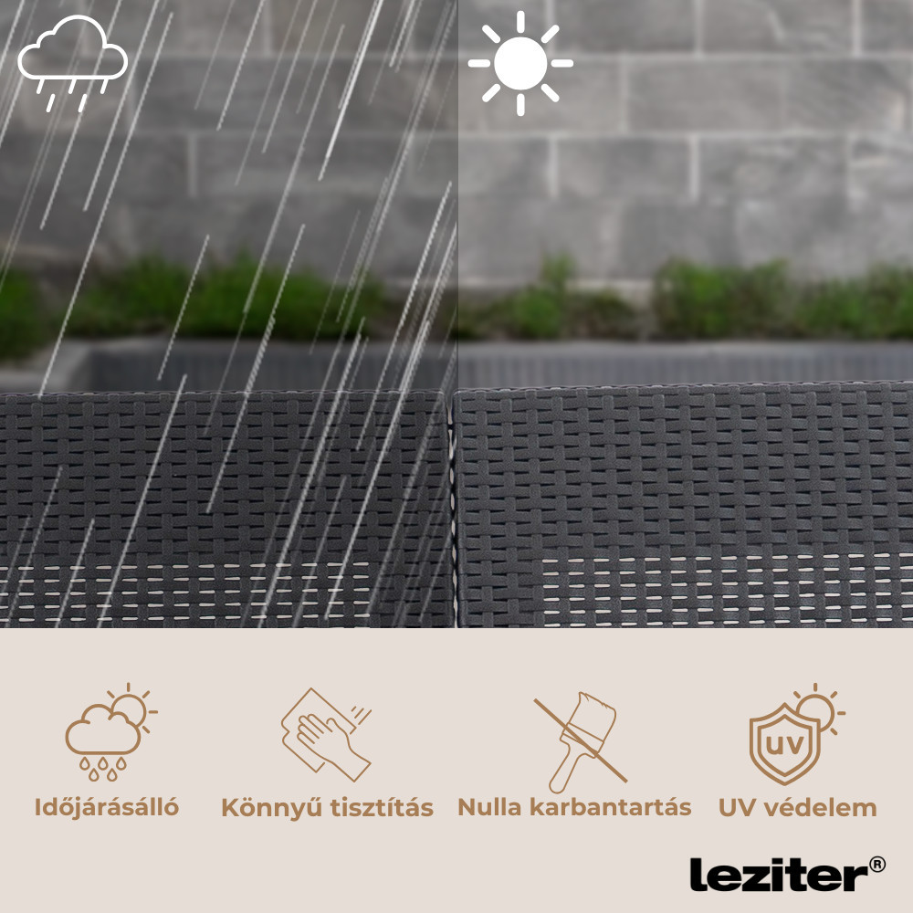 A grafit színben kapható kerti kanapé könnyű, egyben tartós vázszerkezettel büszkélkedik. Mindennek tetejében roppantul könnyen tisztítható minden egyes eleme, így pillanatok alatt makulátlanná varázsolható az összkép.