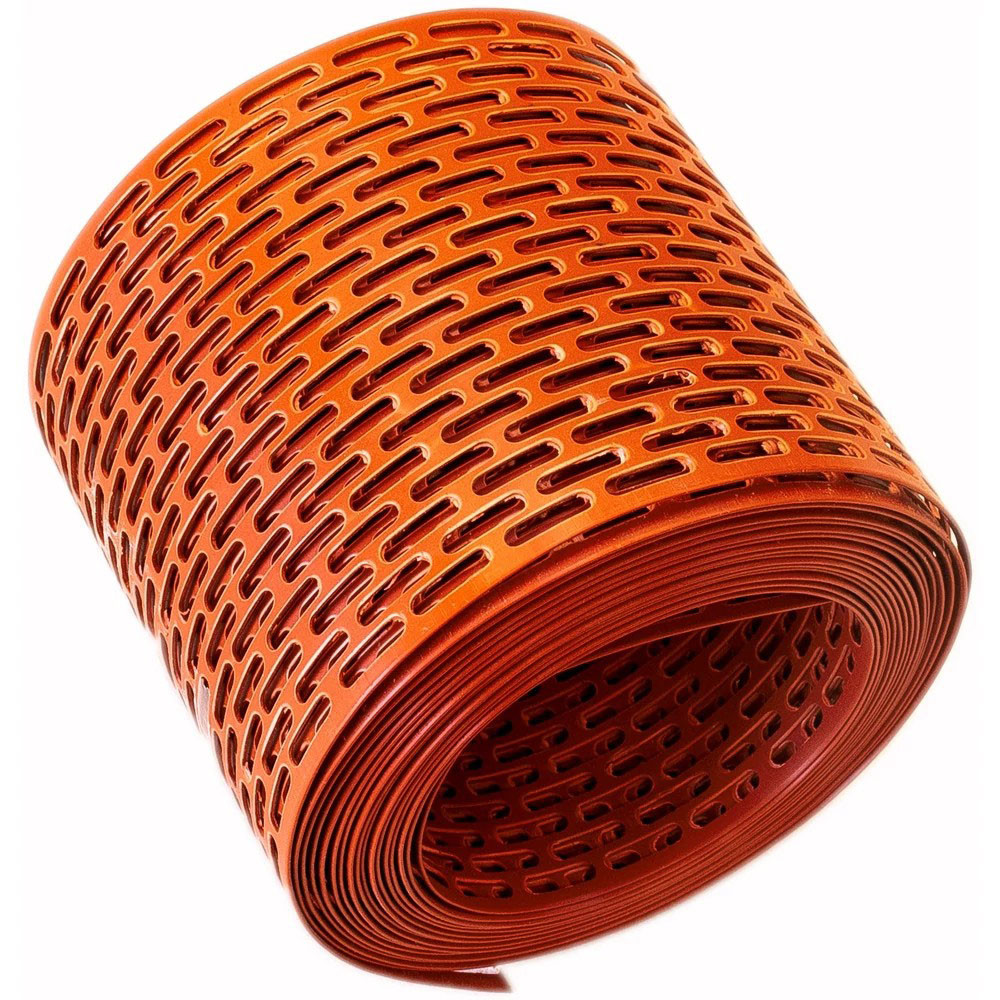 A Dachler Szellőzőszalag téglavörös 10 cm x 5 m egy tetőszellőző elem, amelyet az eresz mentén alkalmaznak a tetőszerkezet szellőzésének biztosítására, miközben megakadályozza a madarak és kis állatok bejutását.
