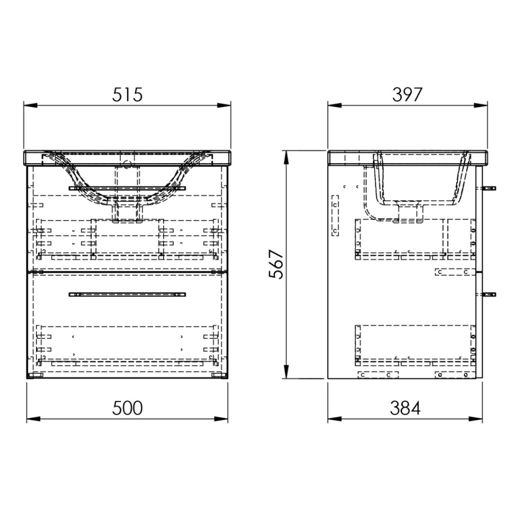 Elita Roma Plus Szett Kompakt fürdőszobaszekrény, 2 fiókkal, mosdóval (50 cm), Magasfényű fehér