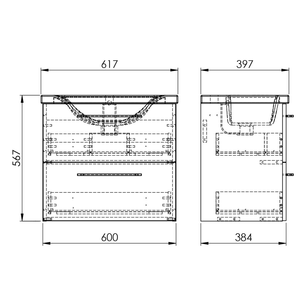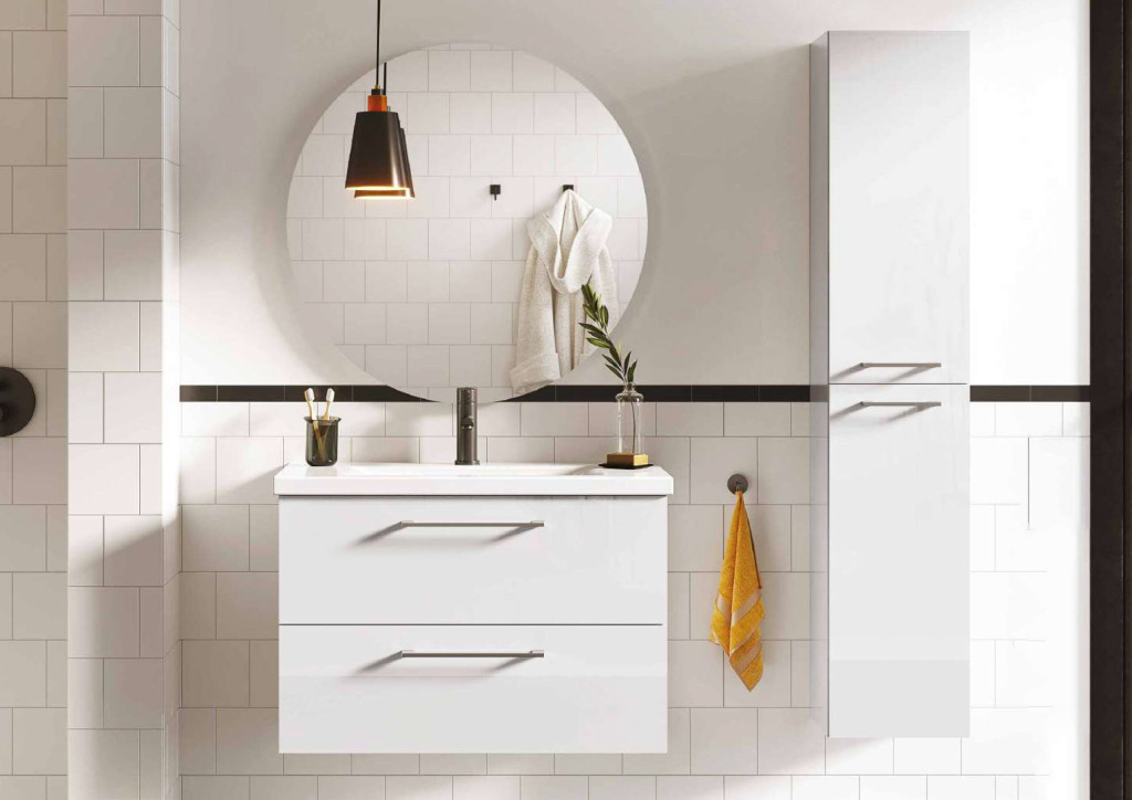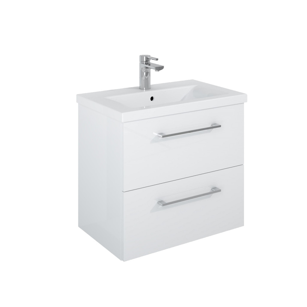 Elita Roma Plus Szett Kompakt fürdőszobaszekrény, 2 fiókkal, mosdóval (60 cm), Magasfényű fehér