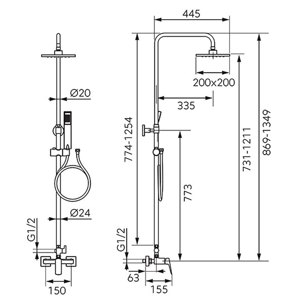 Ferro Vitto VerdeLine Zuhanyszett kézi- és fejzuhannyal, zuhanycsapteleppel és zuhanytartó rúddal, króm