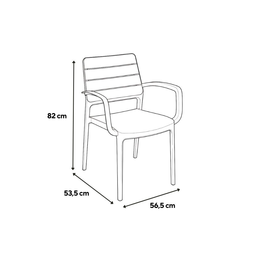 A Porto kartámaszos kerti szék letisztult formavilágával és ergonomikus kialakításával kényelmes ülőhelyet biztosít a mindennapokban. A karfák stabil támaszt nyújtanak a karok számára, így hosszabb ideig tartó használat esetén is komfortos marad.