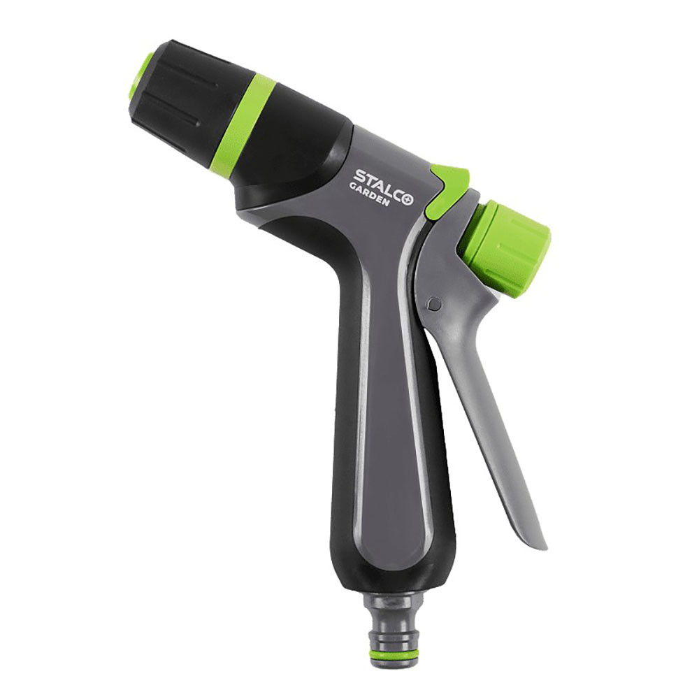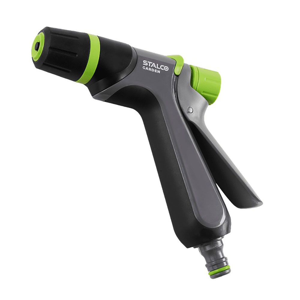 Az Állítható szórópisztoly EXP STALCO GARDEN egy kézi kerti locsolóeszköz, amely a vízsugár erősségének és formájának szabályozását teszi lehetővé. A szórási minta a fej elforgatásával módosítható koncentrált sugárról szélesebb permetre. Az UNI FIT univerzális csatlakozórendszer kompatibilis a legtöbb kerti tömlő gyorscsatlakozóval. ABS és TPR műanyagból készült, így ellenálló és kényelmesen használható kerti locsolási feladatok során.
