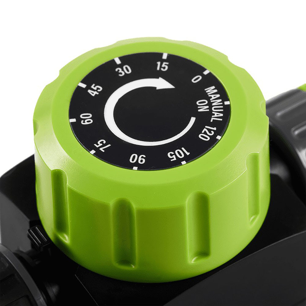 Ez a mechanikus locsoló időzítő legfeljebb 120 perc öntözési idő beállítására alkalmas, ami a legtöbb általános kerti feladathoz elegendő.