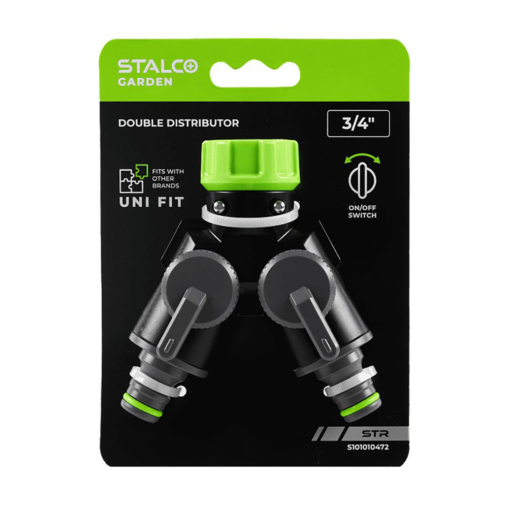 A STR STALCO GARDEN dupla elosztó szelepekkel egy kerti vízelosztó szerelvény, amely lehetővé teszi két tömlő egyidejű csatlakoztatását egyetlen csaphoz. A beépített szelepek segítségével a két vízág külön-külön szabályozható vagy elzárható. ABS műanyagból készült, amely jó ütésállóságot és hosszú élettartamot biztosít kültéri használat során. A UNI FIT kompatibilitás lehetővé teszi, hogy más gyártók gyorscsatlakozó rendszereivel is együtt használható legyen. Elsősorban kerti öntözésnél, locsolásnál és tömlők elágaztatásánál alkalmazzák.