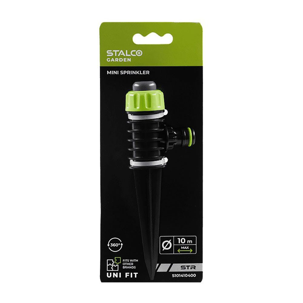 Az egyenes leszúrható locsoló (STR STALCO GARDEN) egy talajba rögzíthető öntözőeszköz, amely kerti tömlőhöz csatlakoztatva biztosít vízellátást növények vagy gyep öntözéséhez. A leszúrható kialakítás stabil rögzítést tesz lehetővé a talajban, így a locsoló egy adott területet folyamatosan tud öntözni. ABS műanyagból készül, amely ellenáll a kültéri használat során fellépő mechanikai igénybevételnek. A UNI FIT kompatibilitás lehetővé teszi a használatát más gyártók gyorscsatlakozó rendszereivel is. Kertekben, virágágyásokban és kisebb zöldfelületek öntözésére alkalmazható.