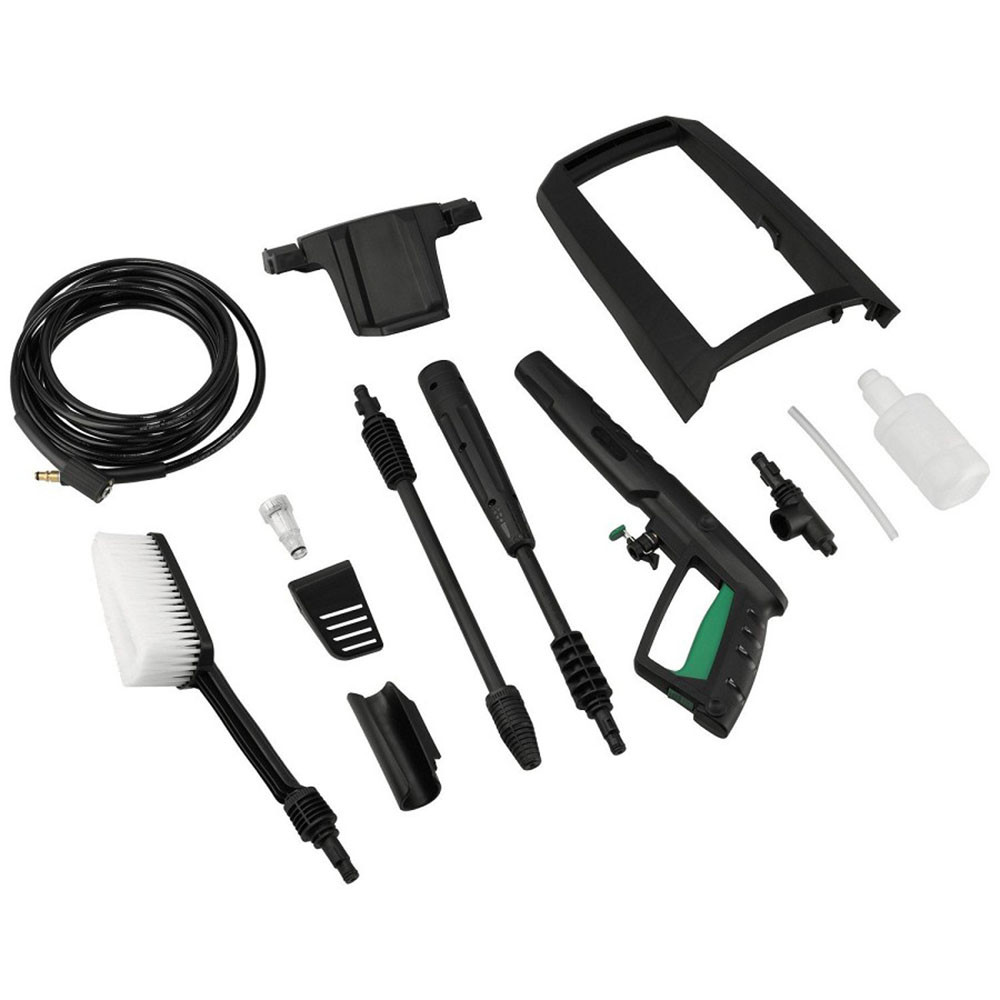 A csomag jellemzően tartalmaz pisztolyt, turbó lándzsát, állítható lándzsát, 6 méteres PU nagynyomású tömlőt, univerzális kefét, habpisztolyt és vízszűrőt.