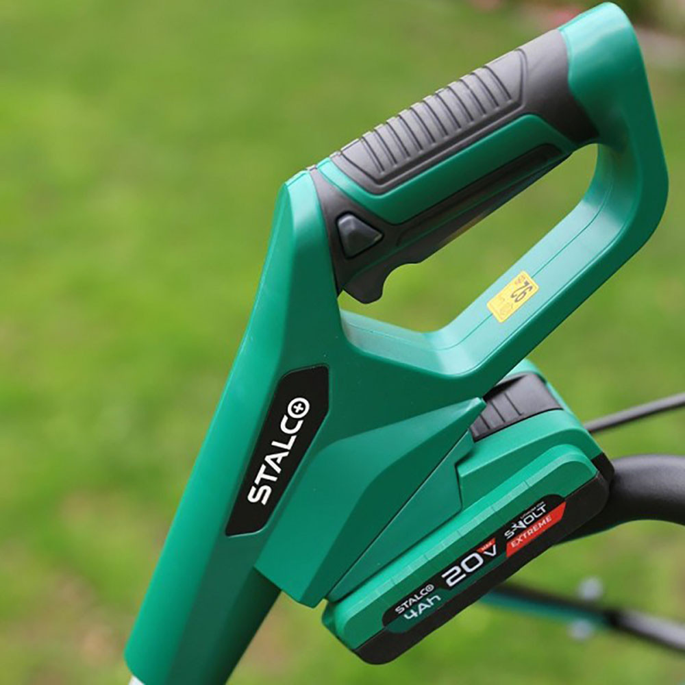 A Stalco LTS20-30 akkus szegélynyíró gyep szélek nyírására, járdaszegélyek menti tisztításra, fák és bokrok körüli fűvágásra, valamint a fűnyíróval nehezen elérhető területek karbantartására használható.