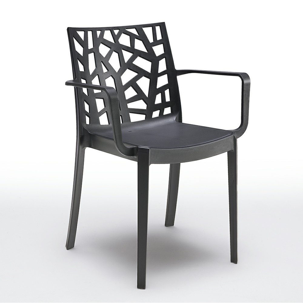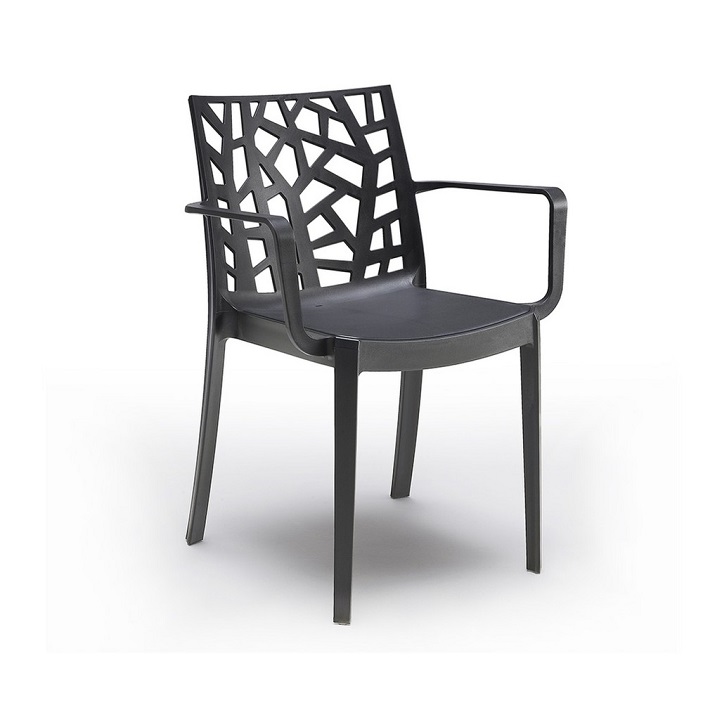 Ez egy különleges dizájnú kerti szék. A grafit szín és a modern stílusú felület a legtöbb felhasználó tetszését elnyeri. Tartós, az időjárás viszontagságainak és az UV sugárzásnak ellenálló műanyagból készült. Könnyű tisztán tartani és nagyon egyszerű összeszerelni. Az elegáns formatervezésnek köszönhetően a kis erkélyeken vagy teraszokon is elfér a hozzá illő asztallal pedig modern étkezővé alakítható. Kiválóan mutat rendezvény termekben, kültéri éttermi teraszokon, kávézókban kültéren és beltéren egyaránt.