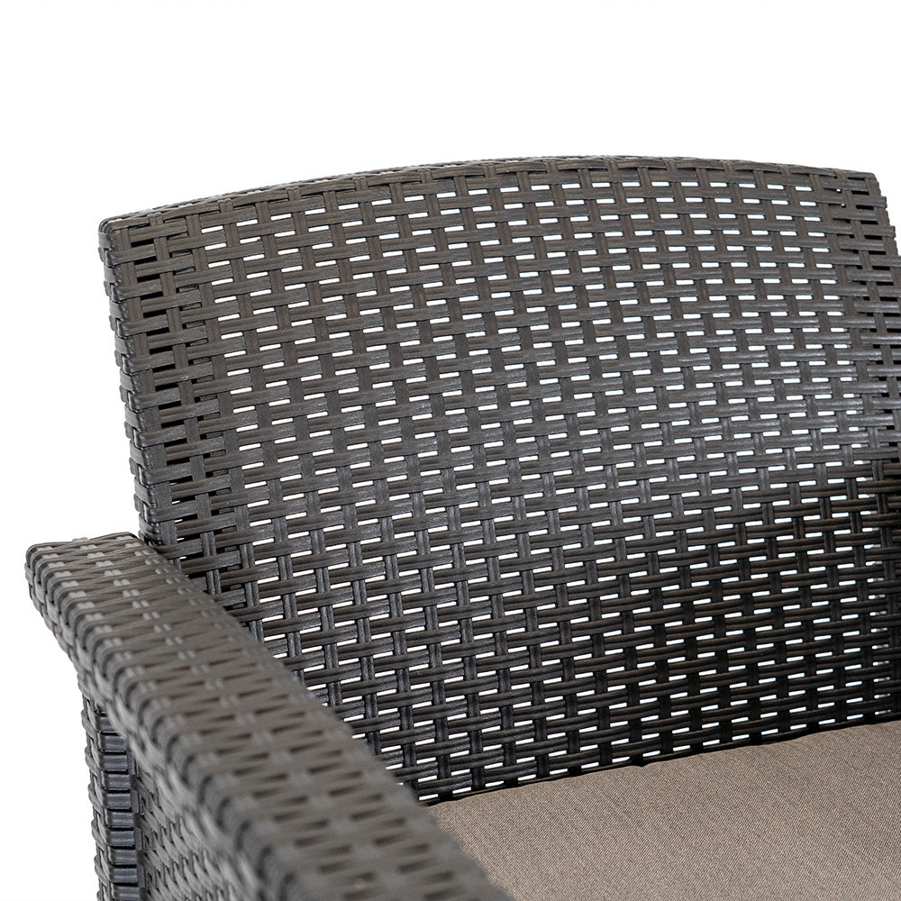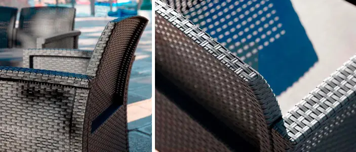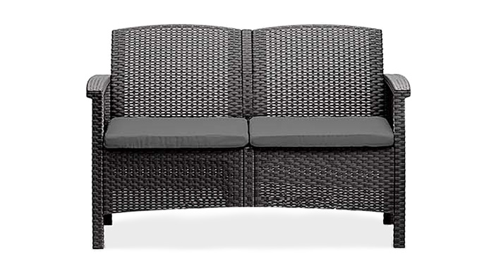 A 117 x 64,5 x 76 cm-es kanapé külső és belső használatra egyaránt alkalmas, mivel ellenáll az idõjárási viszonyoknak. Fontos eleme lesz a kerti vagy teraszi felszerelésnek, kettő szeméyl számára kínál ülőhelyeket, és a legmagasabb kényelmet biztosítja számukra. Ez a bútor praktikus, masszív, tartós és kivételesen esztétikus, ezért magán- és kereskedelmi helyiségekben is használható (pl. éttermek, szállodák, kávézók).