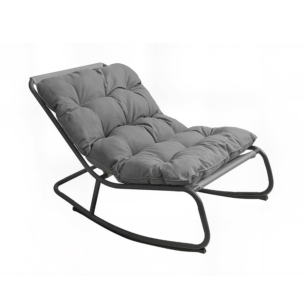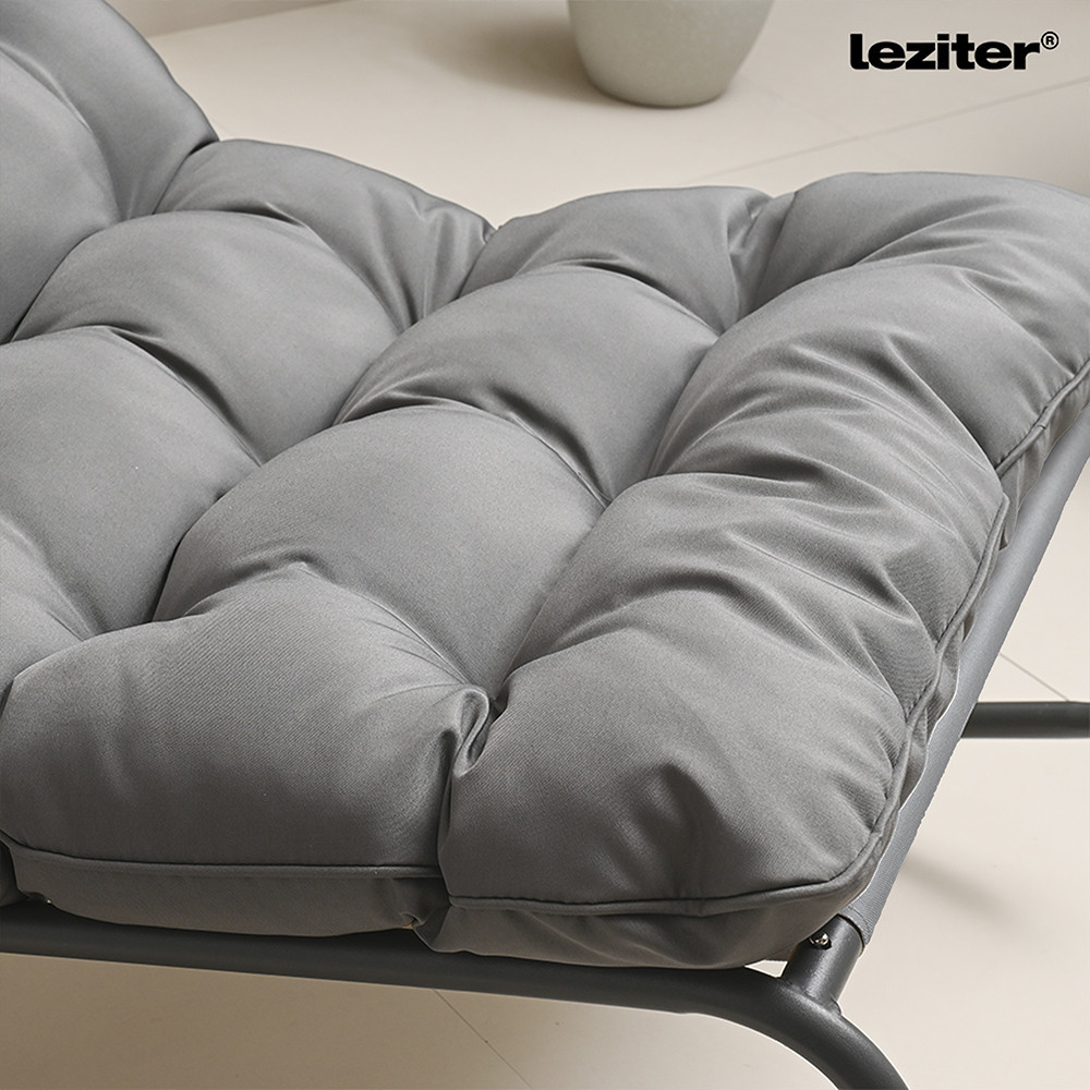 A Zen hintaszék ülőfelülete vastag habszivacs párnázással készült, amely kényelmes alátámasztást biztosít ülés és pihenés közben. A poliészter huzattal ellátott, tűzött kialakítású párna segít a forma megtartásában, miközben puha és komfortos felületet nyújt rövidebb vagy hosszabb relaxációhoz is. A szürke színű párnázat visszafogott, semleges megjelenést ad a hintaszéknek, amely könnyen illeszthető különböző stílusú környezetekbe, legyen szó kerti pihenősarokról, teraszról vagy beltéri lounge térről. A világos ülőfelület és a fekete acél váz kontrasztja modern, letisztult összhatást eredményez.